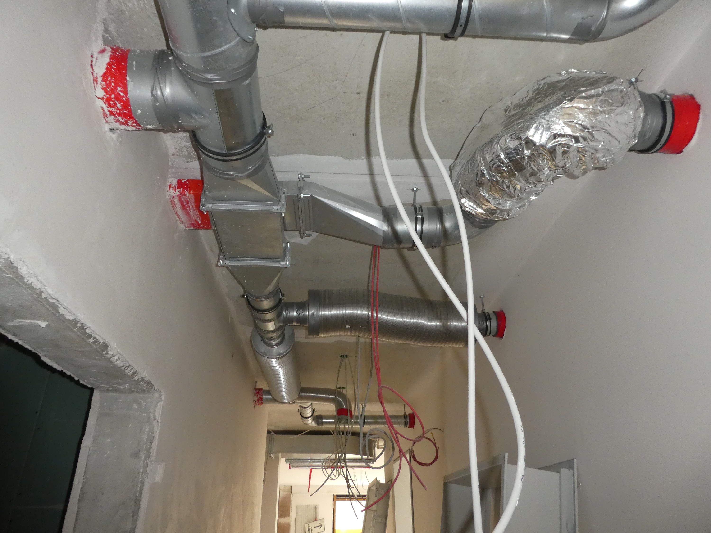De Isolierarbeiten an der Westfassade sind weitergegangen, im ganzen Haus hat sich die Lüftungsanlage deutlich weiterentwickelt. Im Haupthaus ist die Installation der Bäder und der Elektrik im 2. und 3.OG bis auf geringfügige Restarbeiten abgeschlossen – die Arbeiten an diesen Gewerken sind im Südflügel und im Nordflügel noch im Gang, dürften aber auch dort in den nächsten Tagen abgeschlossen werden.