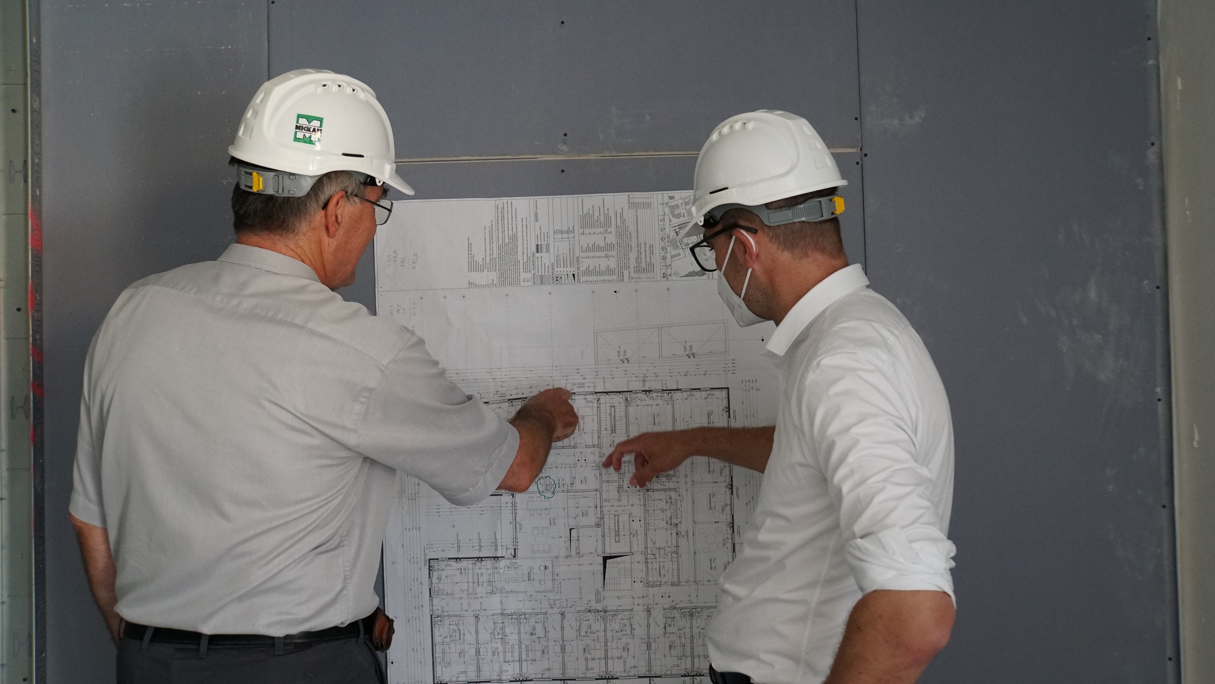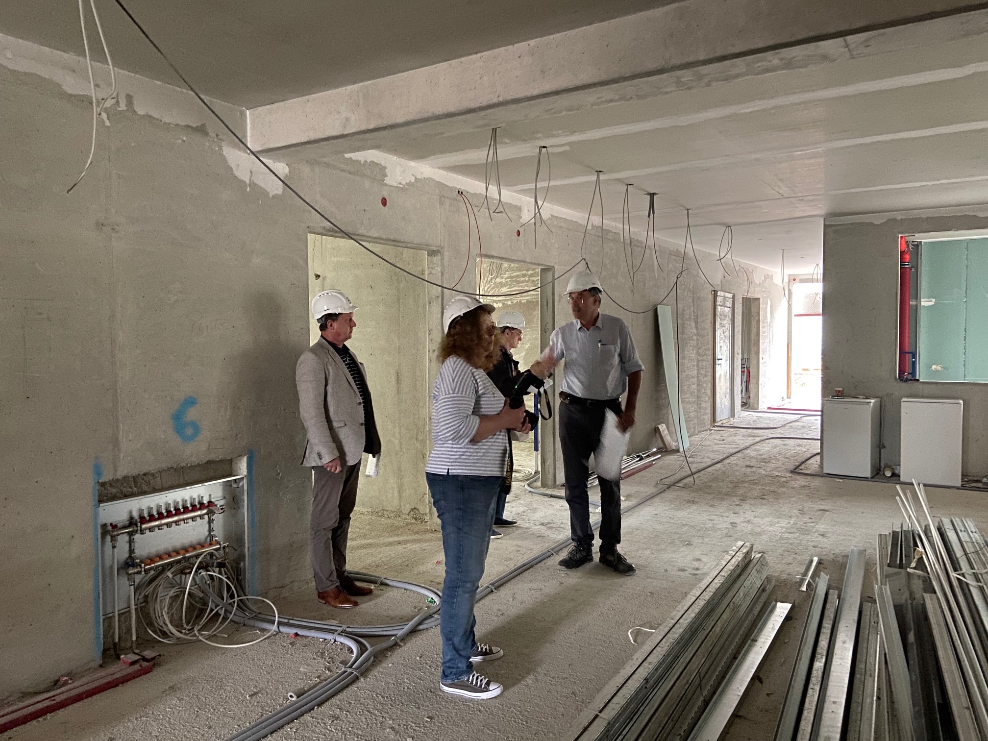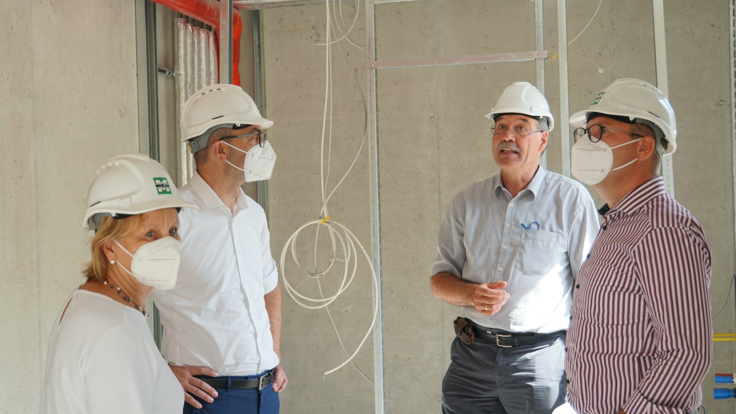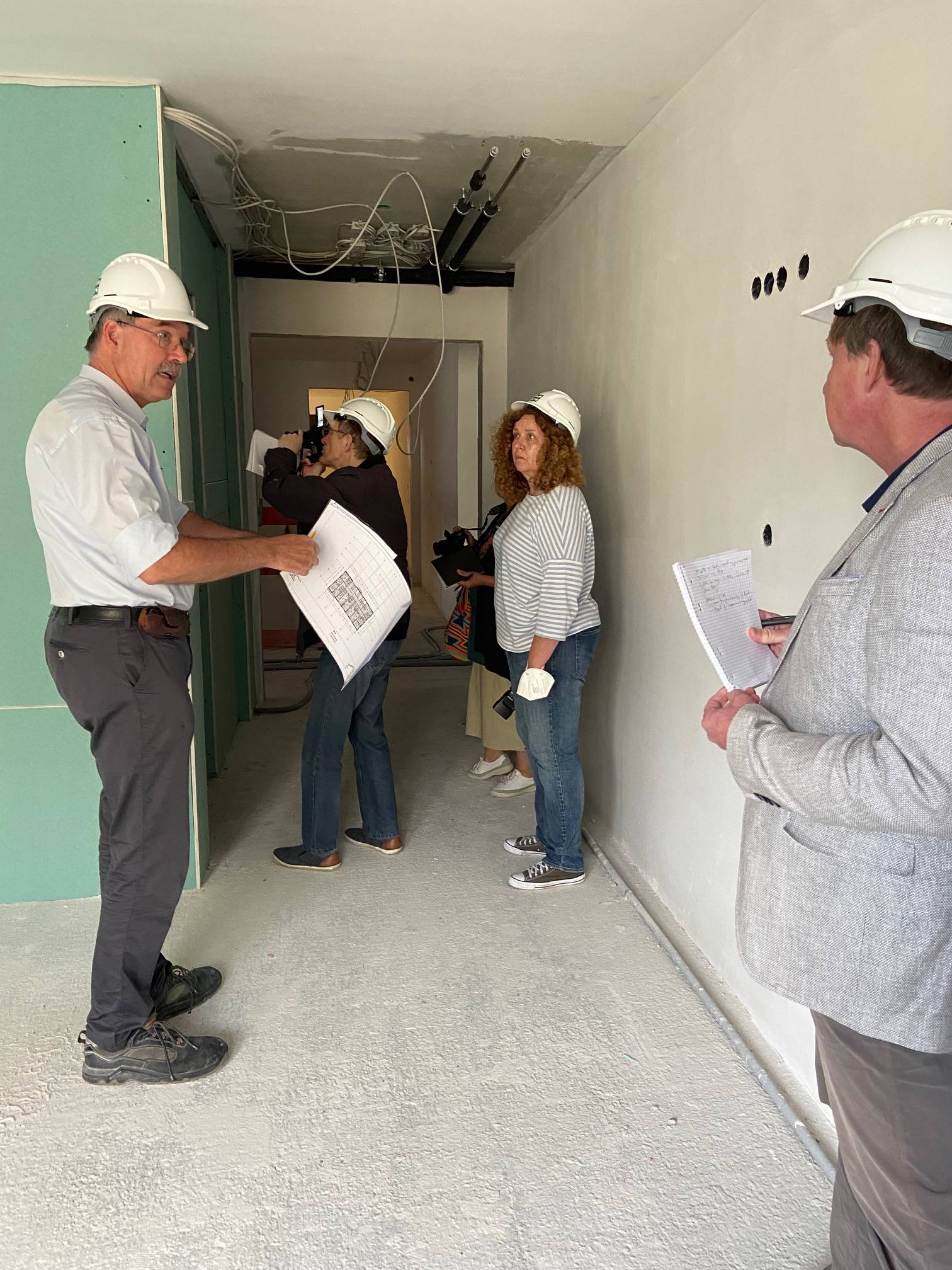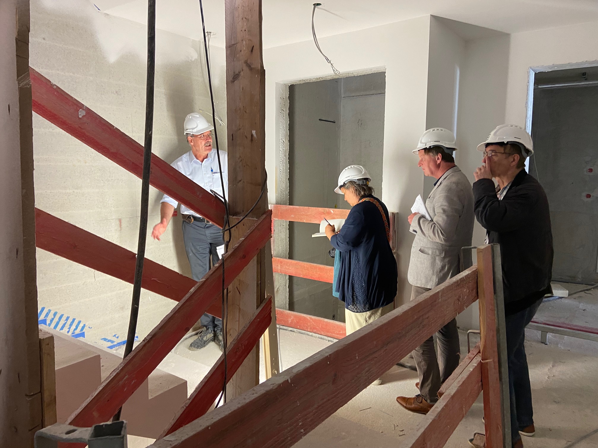 Herr Christian Ganslmeier informierte Frau Gaby Off-Nesselhoff Mitglied des Bezirkstages Oberbayern, den Bundestagsabgeordneten Herrn Michael Kiesling und den Landtagsabgeordneten Herrn Benjamin Miskowitsch über den Stand der Bauarbeiten des Hospizes und Frauenhauses.