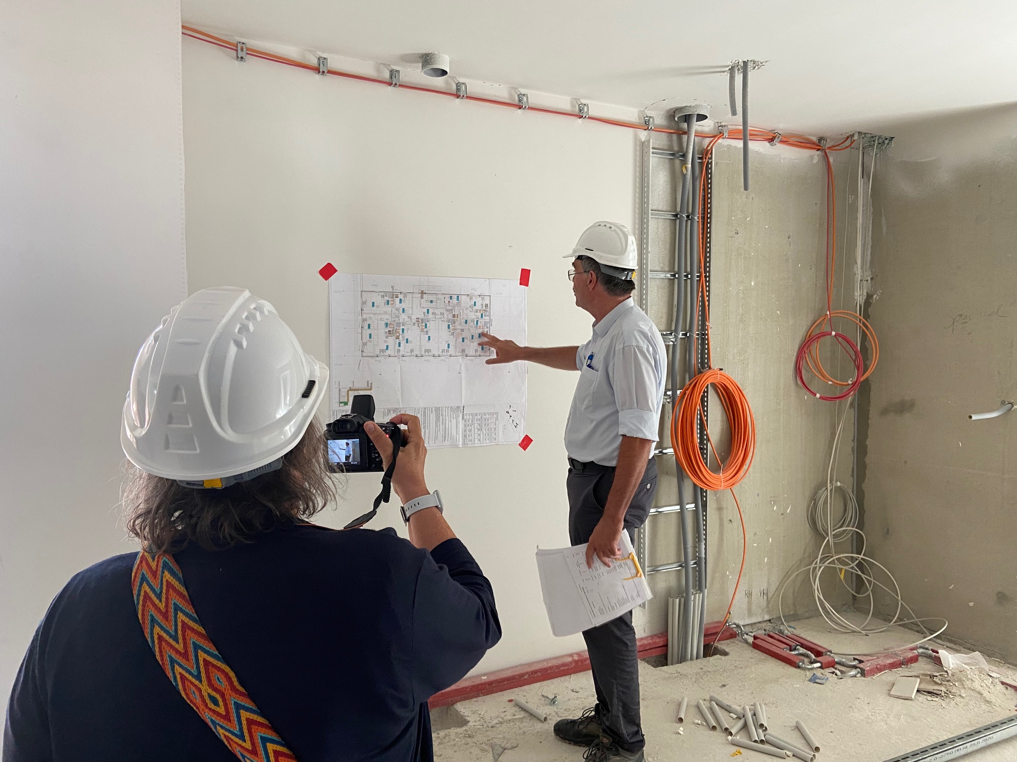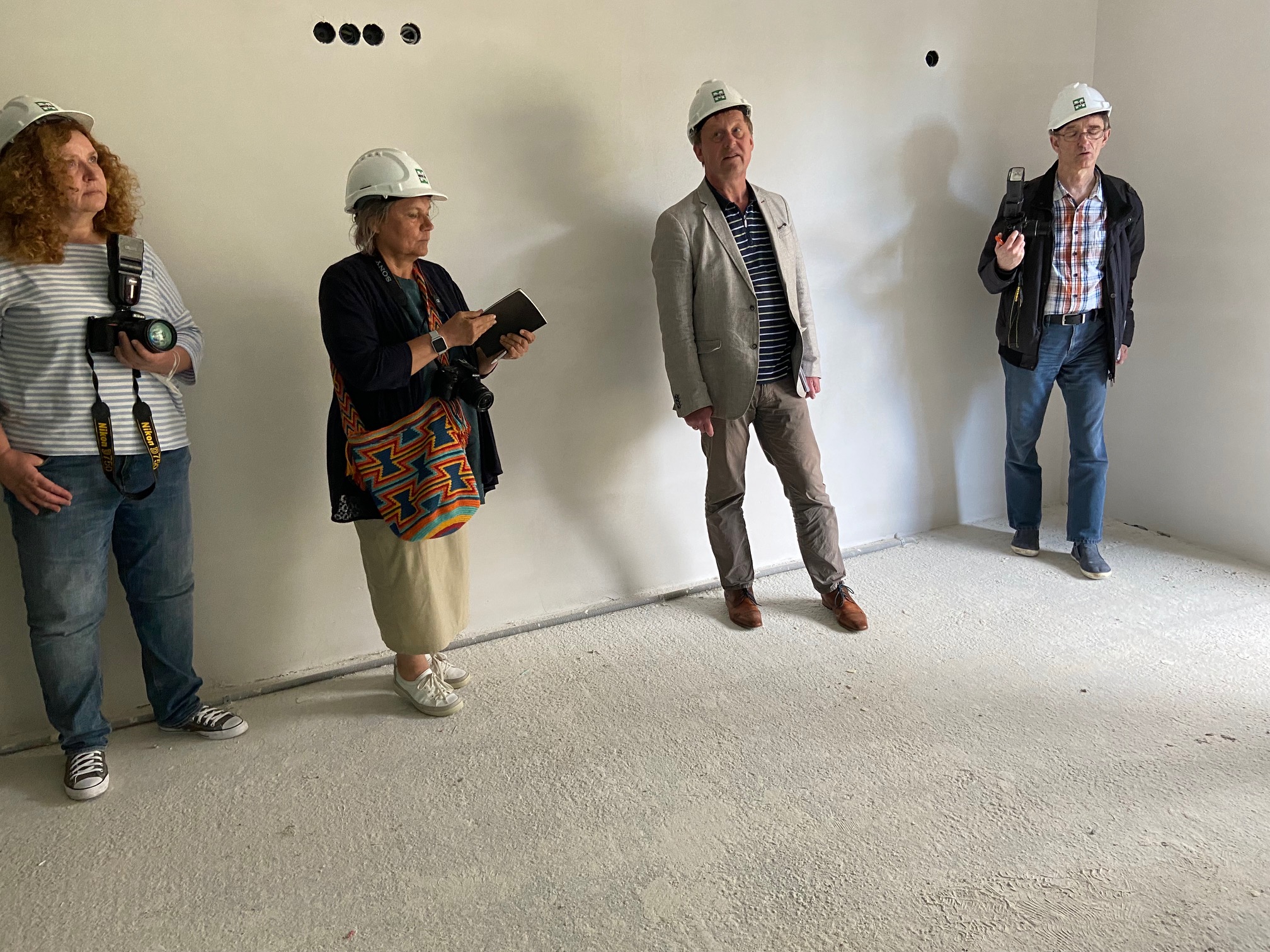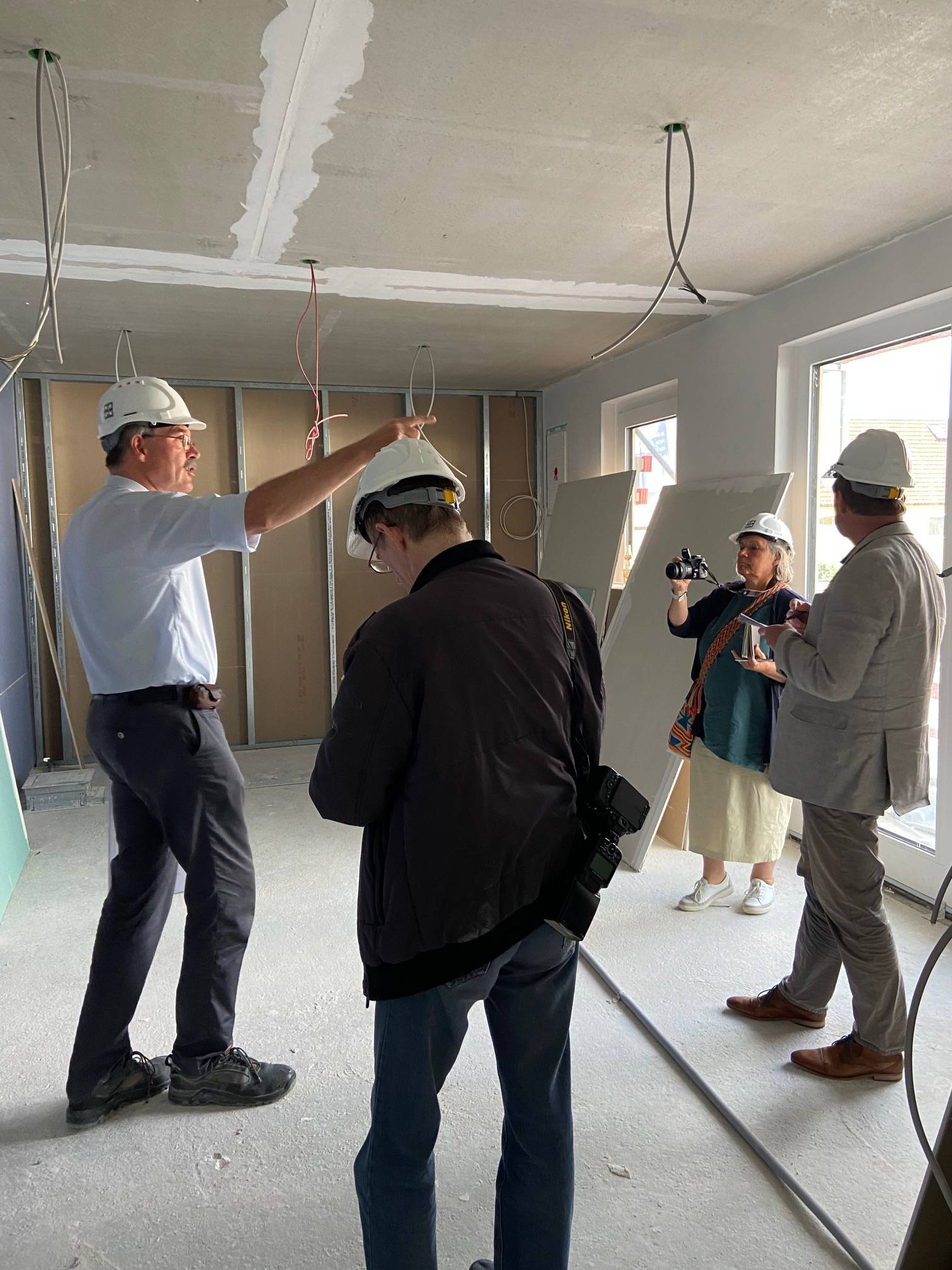 Herr Christian Ganslmeier führte die Vertreter der regionalen und überregionalen Presse durch die Baustelle des Hospizes und Frauenhauses in Germering.