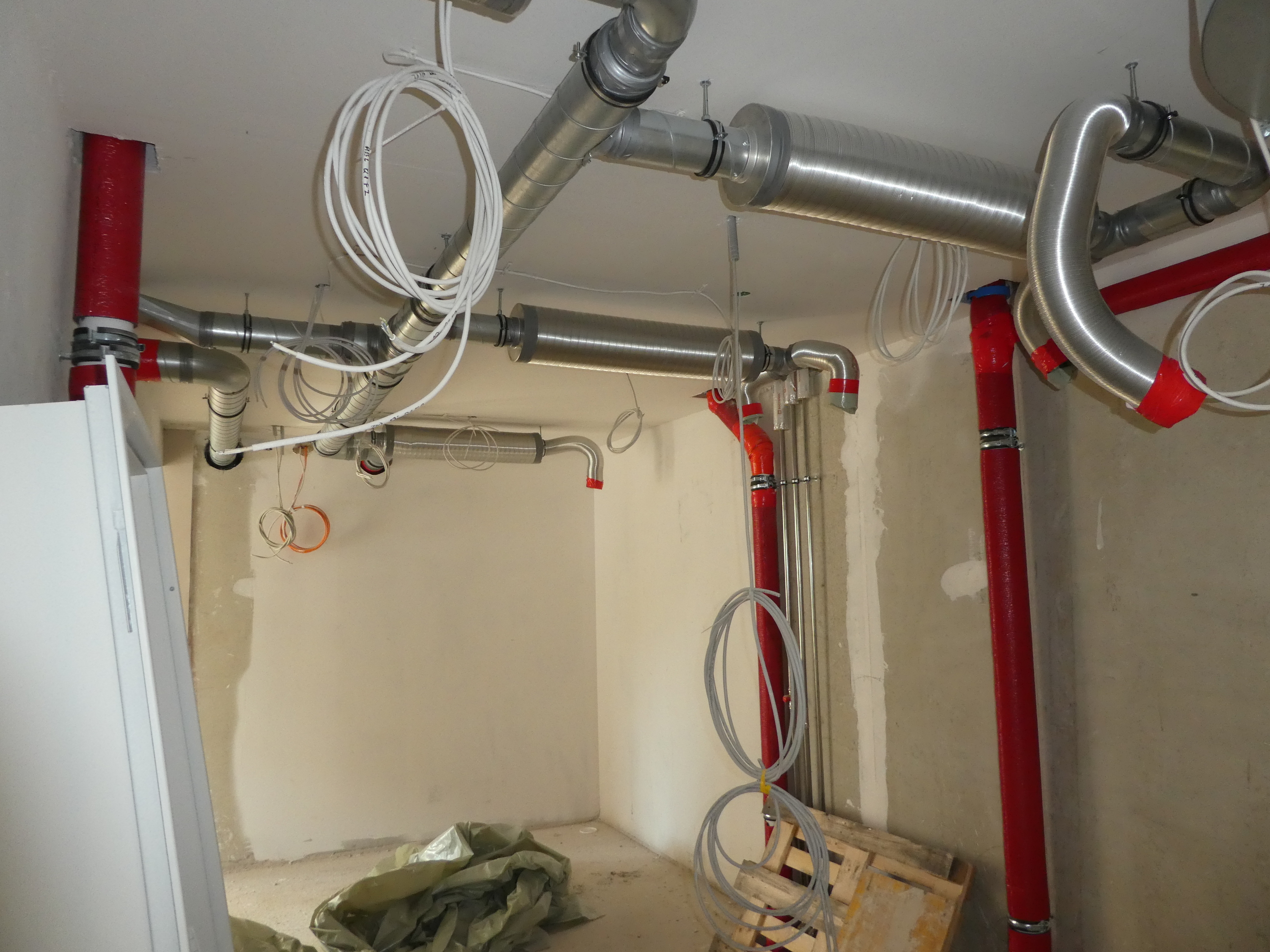 Auch die 27.KW stand ganz im Zeichen des Innenausbaus: die Sanitärinstallation und der Einbau der Lüftungsanlage bestimmten das Geschehen. Auch der Trockenbau und die Verputzarbeiten sind weiter vorangeschritten. Dabei haben wir die Fassade nicht vergessen: sie wurde nochmals genau auf vollständige Herstellung aller technischen Details überprüft, damit demnächst mit der Anbringung der Wärmedämmung begonnen werden kann.